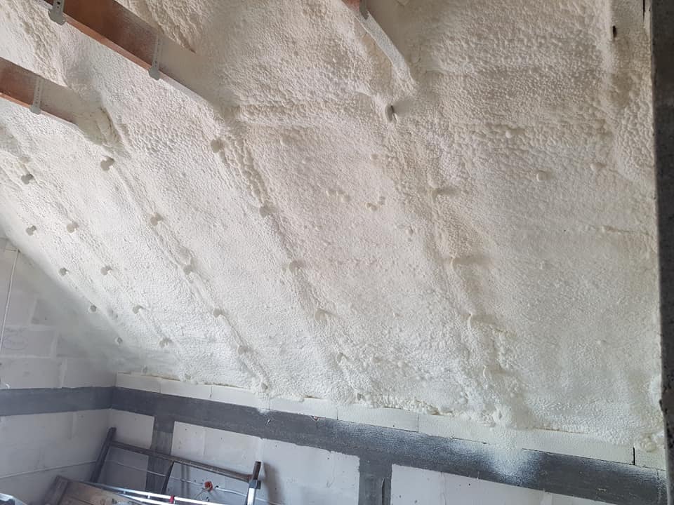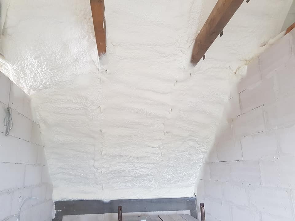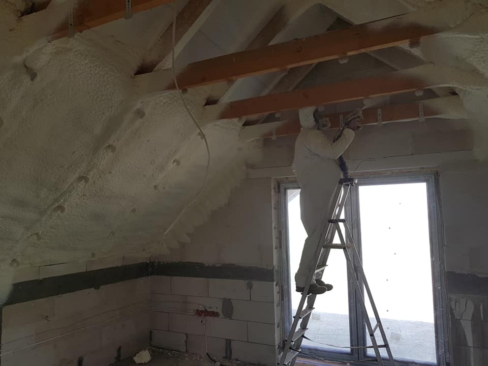 W realizacji zastosowano piankę PUR (zamknięto-komórkowa) o wysokim współczynniku izolacyjności, tworzącą jednolitą i szczelną warstwę izolacji, która dotarła do trudnodostępnych miejsc i skutecznie wyeliminowała mostki termiczne.