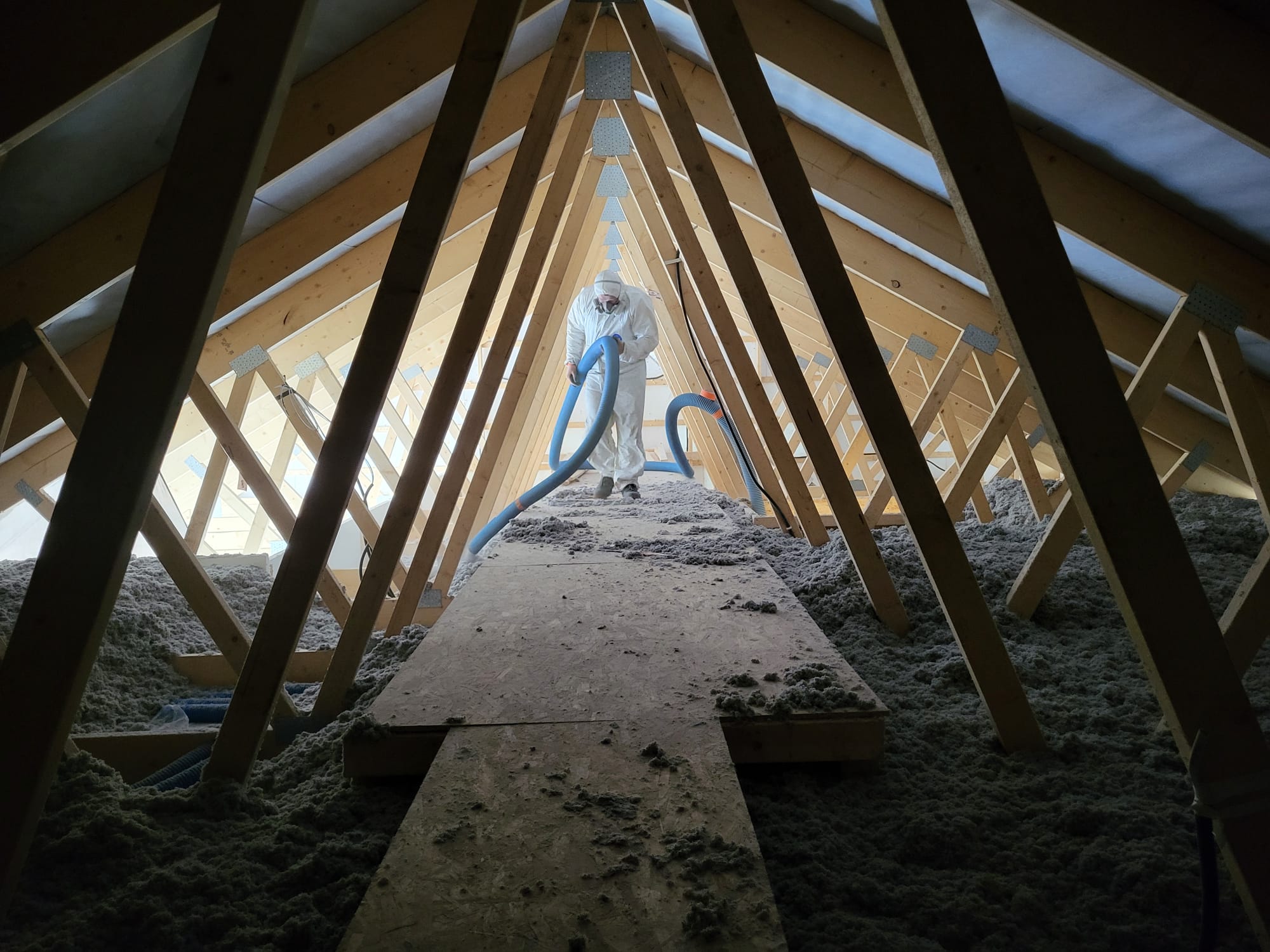 Wykonaliśmy kompleksowe ocieplenie stropu wiązarowego w budynku wielorodzinnym w Białej Podlaskiej przy użyciu celulozy URSA.