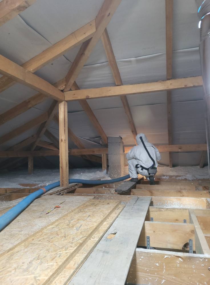 Ocieplenie stropów pianą PUR (25 cm) na Osiedlu Nowy Świat w Cicibórze Dużym (okolice Białej Podlaskiej) — poprawa komfortu termicznego i akustycznego; oszczędności na ogrzewaniu szacunkowo do 30%.